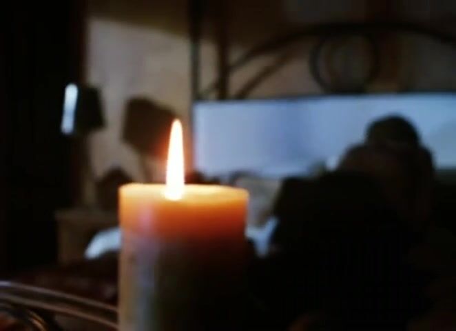 Hilary Swank having sex with a guy on a bed while on her back before flipping over and riding him all while wearing a black bra and grinding on him and occasionally leaning down and kissing him.