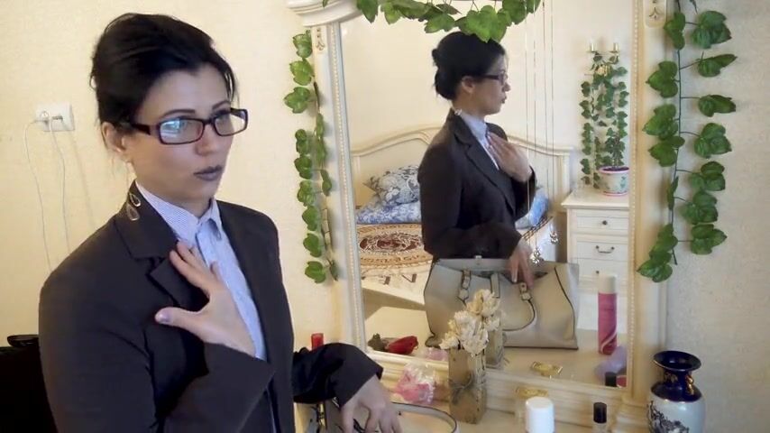 a woman is going to work and feels tired in order to defuse herself, she masturbates and gets an orgasm and becomes content.