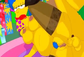 Funny cartoon Simpson parody where Homer fucks his girlfriends-in-law hookers, Patty and Selma Bouvier.
