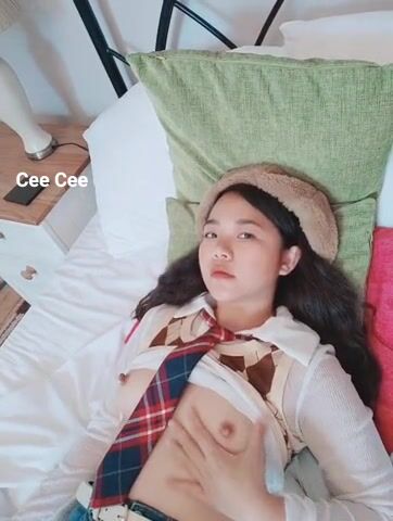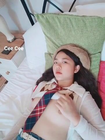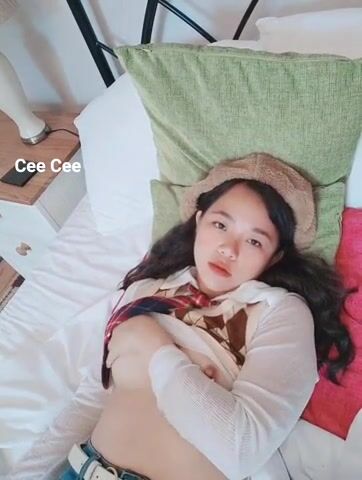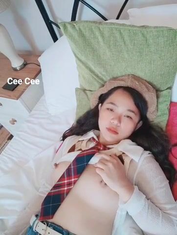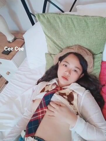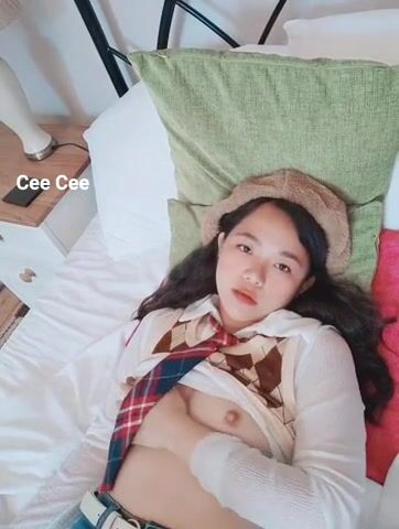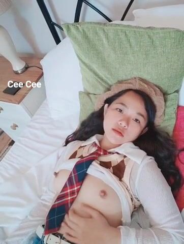 Watch a cute Asian slut playing with her tits