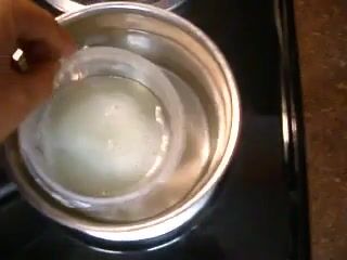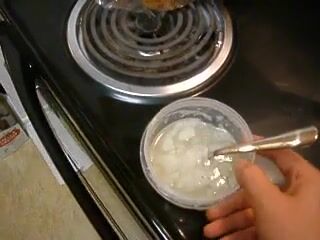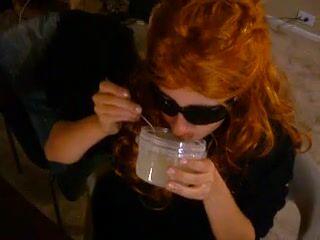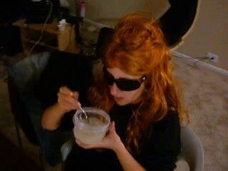 Chick eats a bowl of cum with a spoon, and takes a blast to the face.