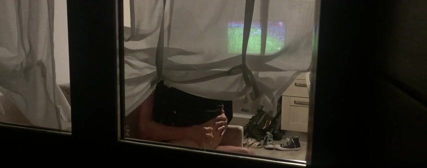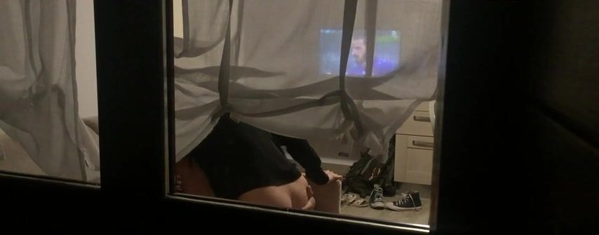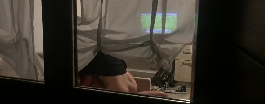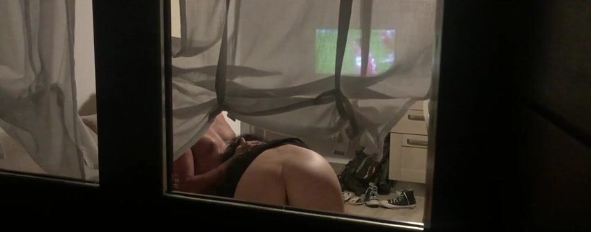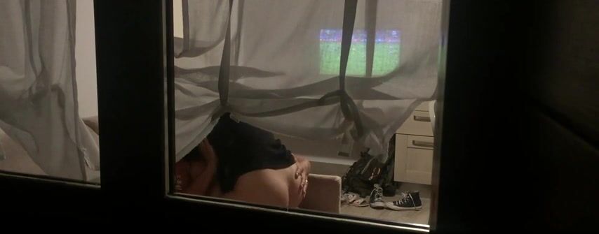 voyeur spying couple fucking behind the curtain