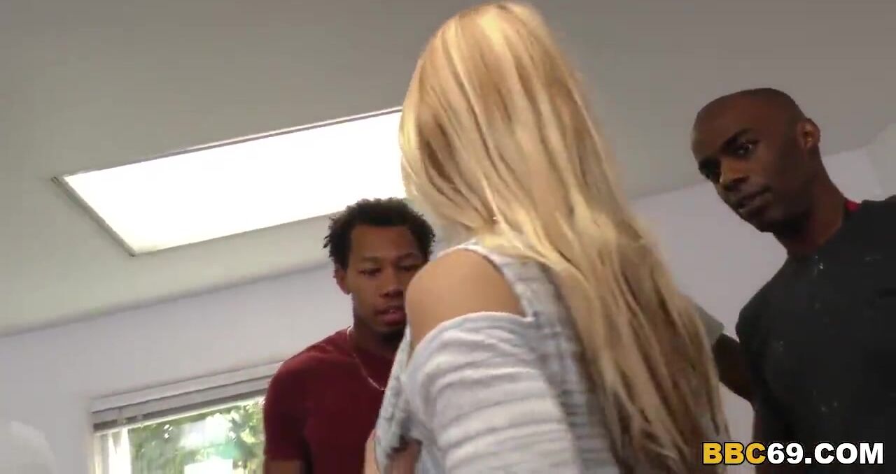 Busty blonde MILF Sarah Vandella gets anal gangbanged by big black cocks. Before interracial gangbang, she gives deepthroat blowjob all of them.