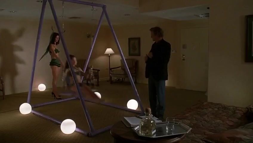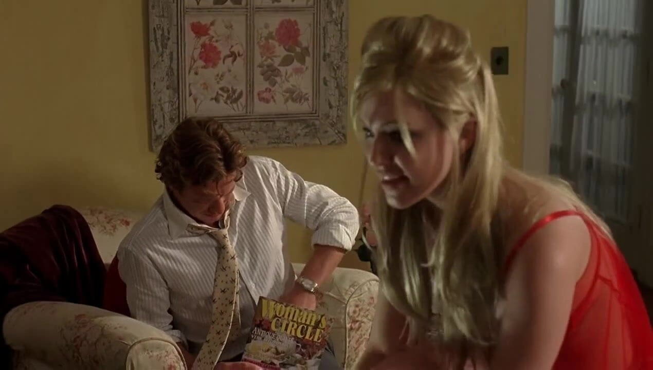 Jessica Kiper giving a few guys lap dances at a party, seen in a red bra and panties. Then Jessica Kiper topless straddles the guy as they having sex, From Sex and Death 101.